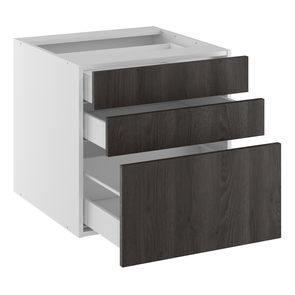 Lavt skuffeskab med 3 anvendelige skuffer. Plads til alle de småting du måtte have brug for at opbevare. Underskabet er udstyret med vores gode skuffer, der bærer helt op til 30 kg. pr. skuffe, og der er både fuldudtræk og softluk på skufferne. Anvend underskabet, hvor der ønskes en ekstra høj sokkel, eller hvor der ønskes en lav bordpladehøjde. Skuffeskabet er velegnet som en del af et køkken- eller bryggersmiljø. Overvej at tilkøbe gummimåtter så alt i skufferne står godt fast ved åbning og lukning.