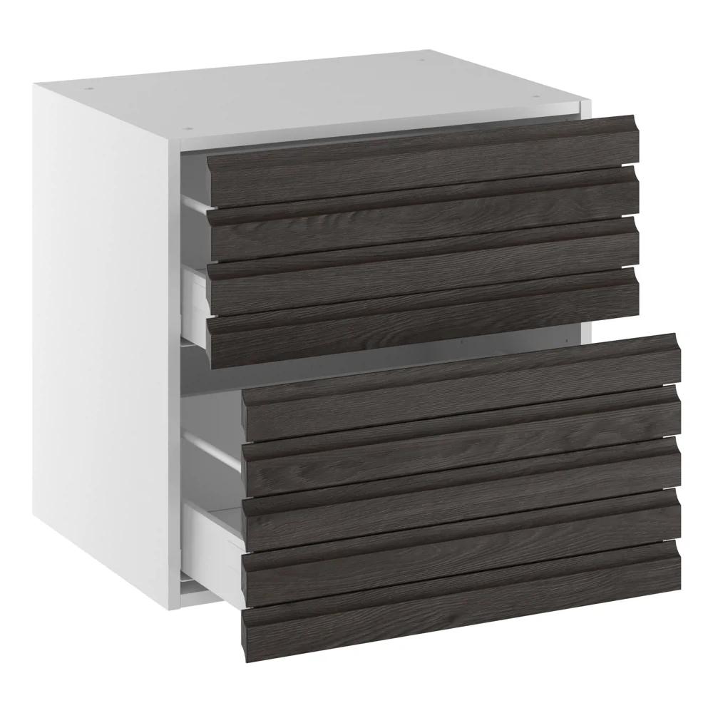 Elegant lavt underskab, der er udstyret med superstærke luksusskuffer, der tåler daglig brug og kan belastes op til 30kg. pr. skuffe. Skufferne har fuld udtræk og er med softclose, så du undgår smæklyden, når de lukkes. Anvend underskabet som en del af et badmiljø. Skabet er kendetegnet ved de smukke linjer som stavene i massiv ædeltræ giver, når man monterer en række skabe sammen. Et smart og praktisk underskab med masser af opbevaringsplads, der især egner sig perfekt til de mindre badeværelser, hvor pladsen er trang.