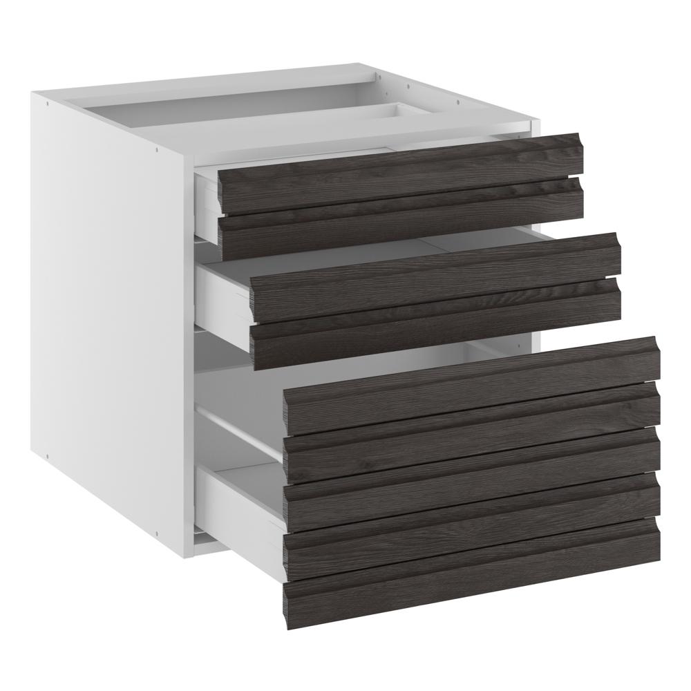 Lækkert lavt design-skuffeskab med fronter i massive træstave i natur-eg. Skabet er velegnet, hvor der enten bruges en ekstra høj sokkel, eller hvor der ønskes en lavere bordpladehøjde. Skabet er udstyret med kvalitets-skuffer, der bærer op til 30 kg. pr. skuffe, og der er selvfølgelig både fuldudtræk og softluk på skufferne. Dette design underskab kan for eksempel anvendes som en del af et køkken- eller bryggersmiljø. Overvej at tilkøbe gummimåtter så alt i skuffen står godt fast ved åbning og lukning.