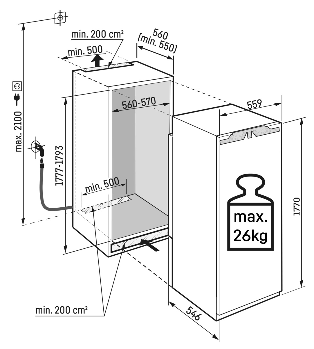 Nichemål højde/bredde/dybde177,7 - 179,3 / 56 - 57 / 55,0cm