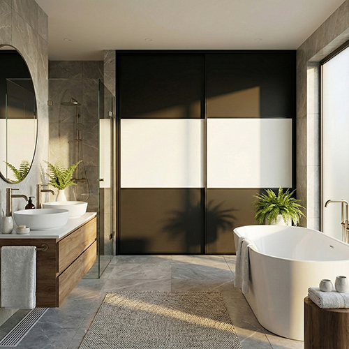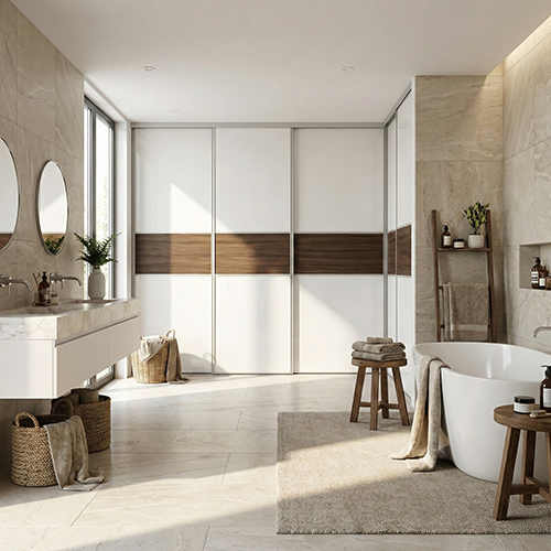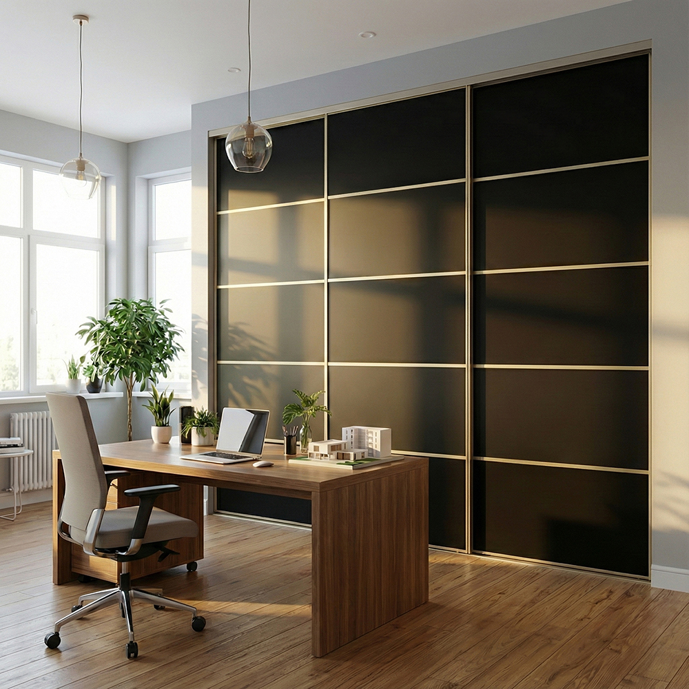 Slank skydedørsprofil giver elegant og robust udførelse med integrerede hjul