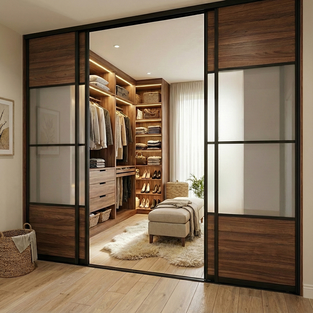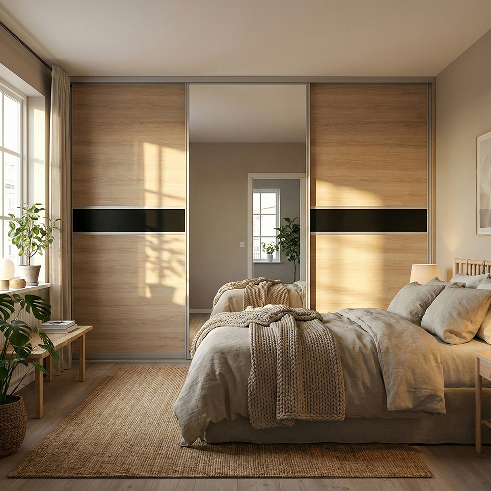 Mogensen Slimline skydelåger på mål til garderobe med 2 låger - Total bredde 97 til 307 cm.