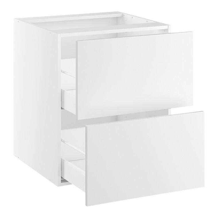 Super praktisk skuffeskab med god plads, også til de lidt højere køkkenting og kolonialprodukter. Underskabet er udstyret med kvalitetsskuffer, der bærer op til 30 kg. pr. skuffe, og der er selvfølgelig både fuldudtræk og softluk på skufferne, der kommer fra det velkendte kvalitetsbrand Blum. Overvej at tilkøbe gummimåtter til skuffebunden, så alt i skuffen står godt fast, når du bruger skufferne.