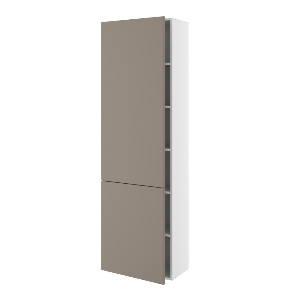 Højskabet, der har todelt låge og en dybde på 32 cm kan anvendes både som kolonialskab, køkkenskab eller bryggersskab, men også som garderobeskab eller på børneværelset.