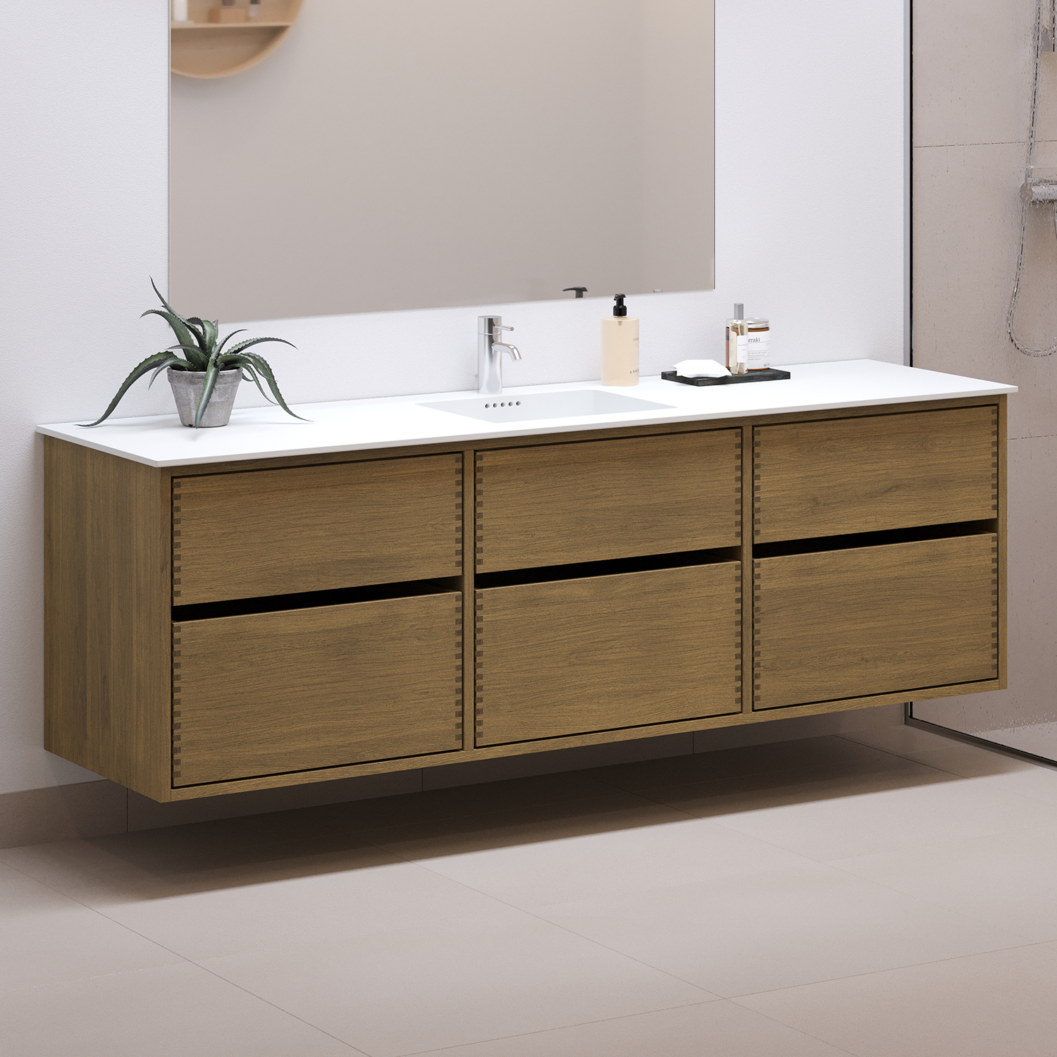 180 cm Mørkolieret Just Wood badmøbel med 6 skufferUden bordplade