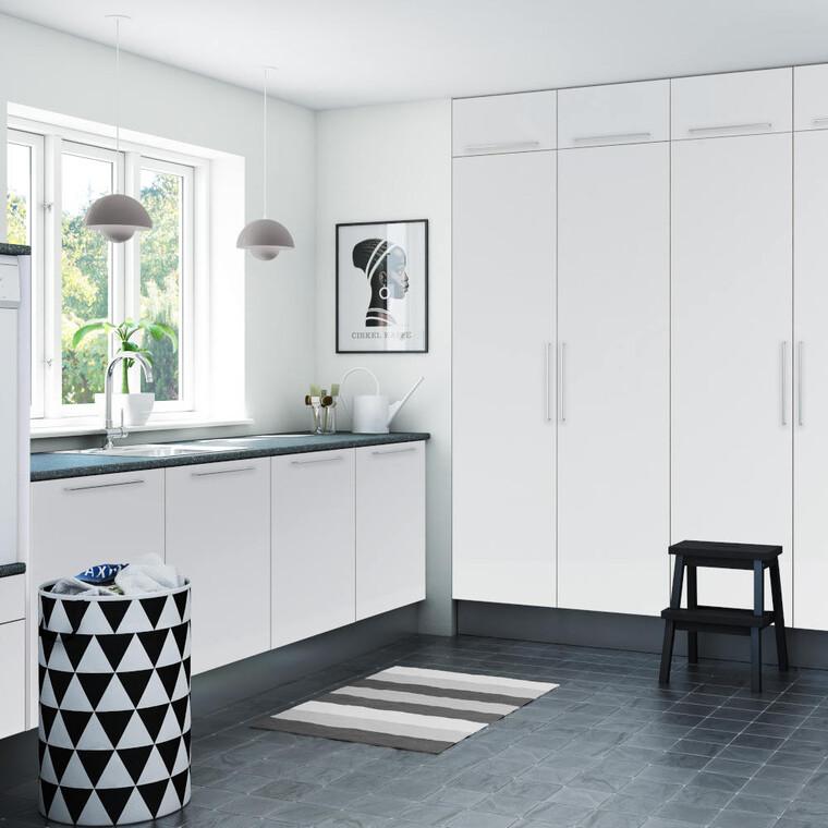 Praktisk lavt overskab med tophængt låge. Skabet, der måler 32 cm i højden, er velegnet som overskab i et bryggers, eller som en del af et skabsmiljø i køkkenet. Anvend skabet til opbevaring af småting, vaskemidler, kolonialvarer og lignende.
