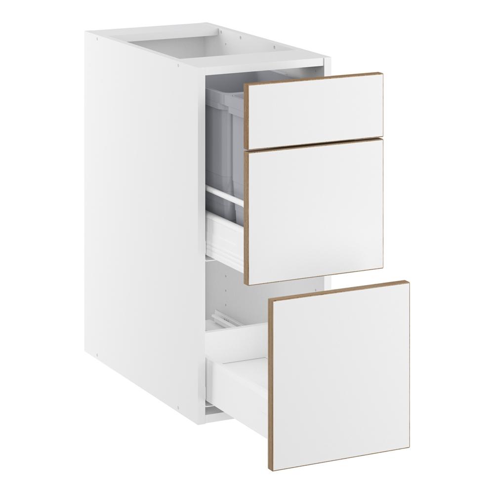 Underskab, m/luksusaffaldsudtræk, 380mm låge, 2-delt sammensat, 2 spande, 1 skuffe. H:704 B:300 D:580
