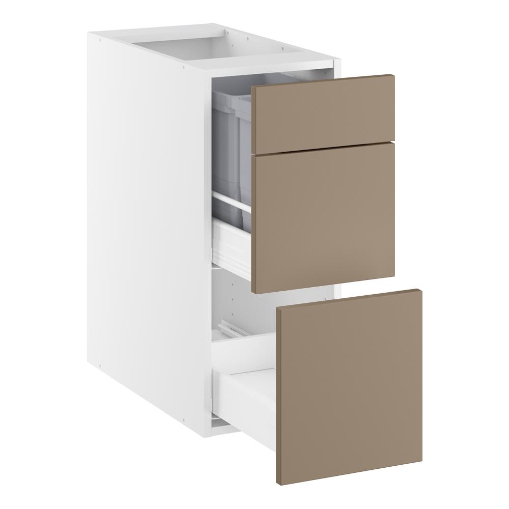Underskab, m/luksusaffaldsudtræk, 380mm låge, 2-delt sammensat, 2 spande m/låg, 1 skuffe. H:704 B:300 D:580