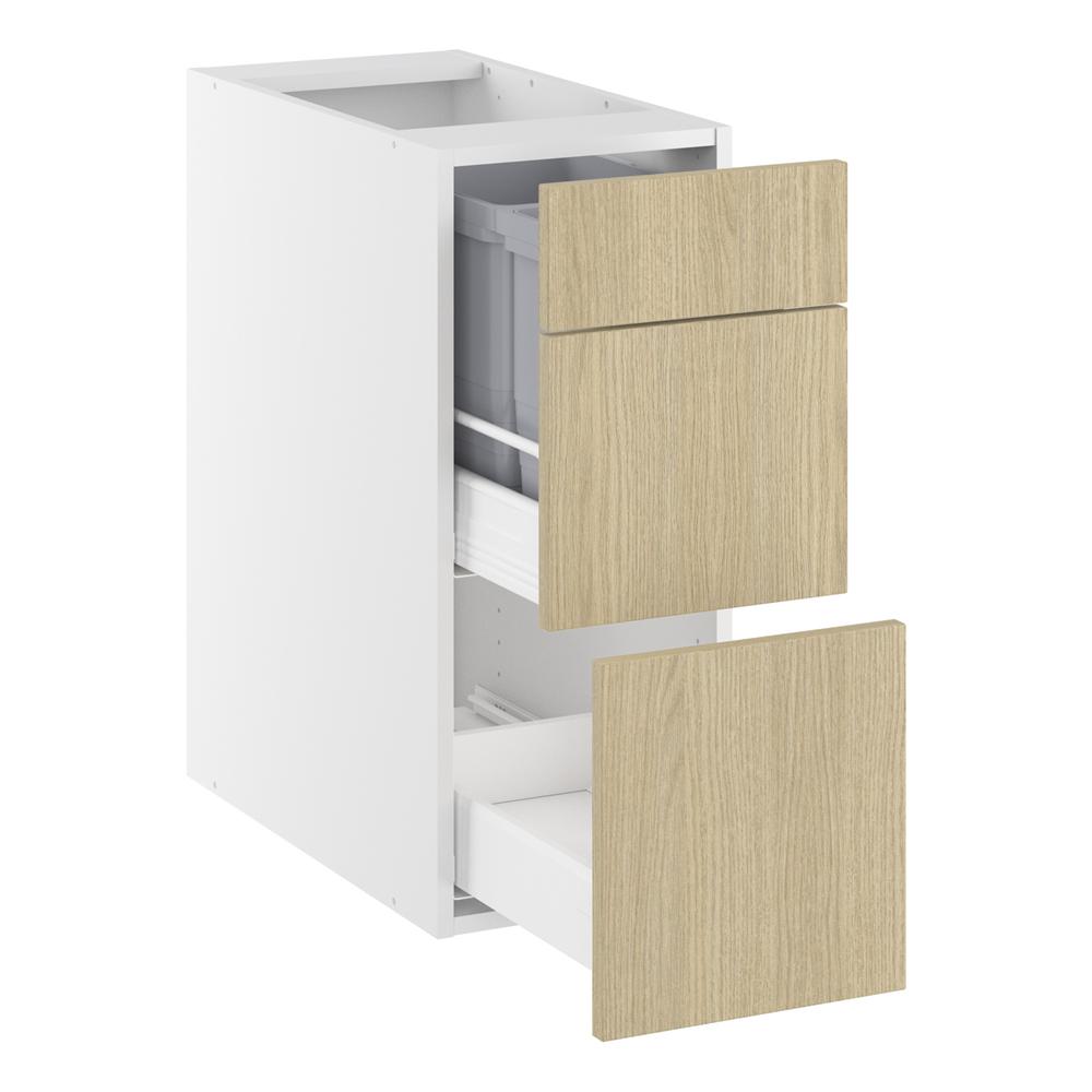 Underskab, m/luksusaffaldsudtræk, 380mm låge, 2-delt sammensat, 2 spande m/låg, 1 skuffe. H:704 B:300 D:580