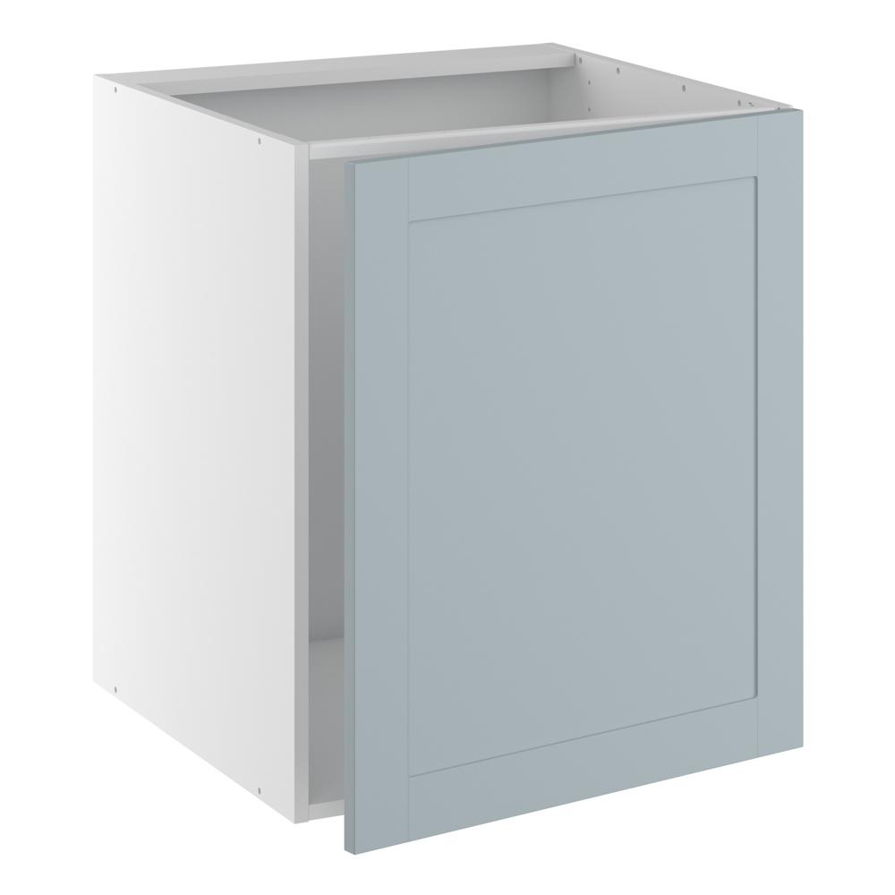 Et uundværligt vaskeskab til køkkenvasken som bruges i de fleste køkken og bryggers-løsninger. I vaskeskabet placeres vasken oppefra, og det er forberedt med metalsarg forrest så der er god plads til vaskekummen. Skabet bør suppleres med en alubund, så eventuelt vandspild ikke skader skabet. Husk også lågedæmper for softclose.