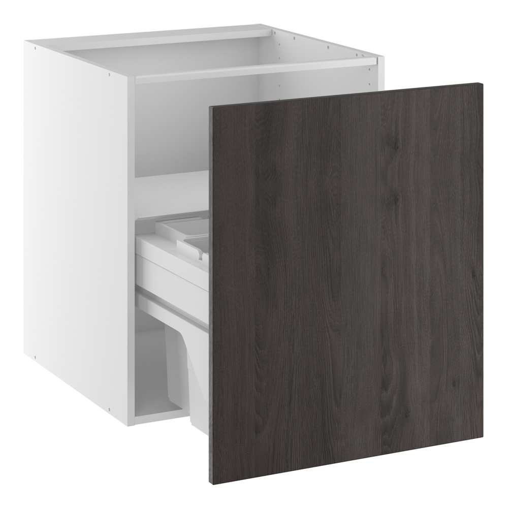 Eksklusiv og praktisk vaskeskab med super effektiv affaldssortering i fire kvalitets-spande. Udtrækket er selvfølgelig udstyret med fuldudtræk og softluk, og der er relativ god plads bag systemet til installationer, trods den gode udnyttelse. Overvej at tilkøbe fodbetjening til udtrækket, så skabet kan åbnes selv med favnen fuld af affald.