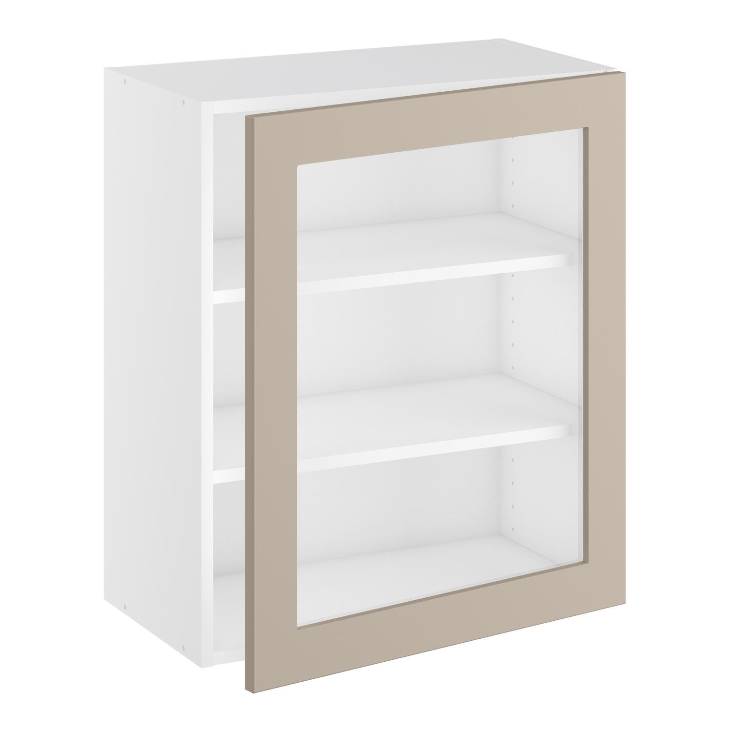 Vitrineskabet har en god praktisk størrelse, der kan monteres de fleste steder. De 2 hylder kan justeres, og skabet kan også suppleres med glashylder. Skabet kan med det indbyggede ophæng monteres alene, men bliver også brugt i sammenhæng med andre skabe. Vitrineoverskabet er velegnet som en del af et køkken- eller bryggersmiljø. Overvej lågedæmpere for at undgå at lågen smækker i.