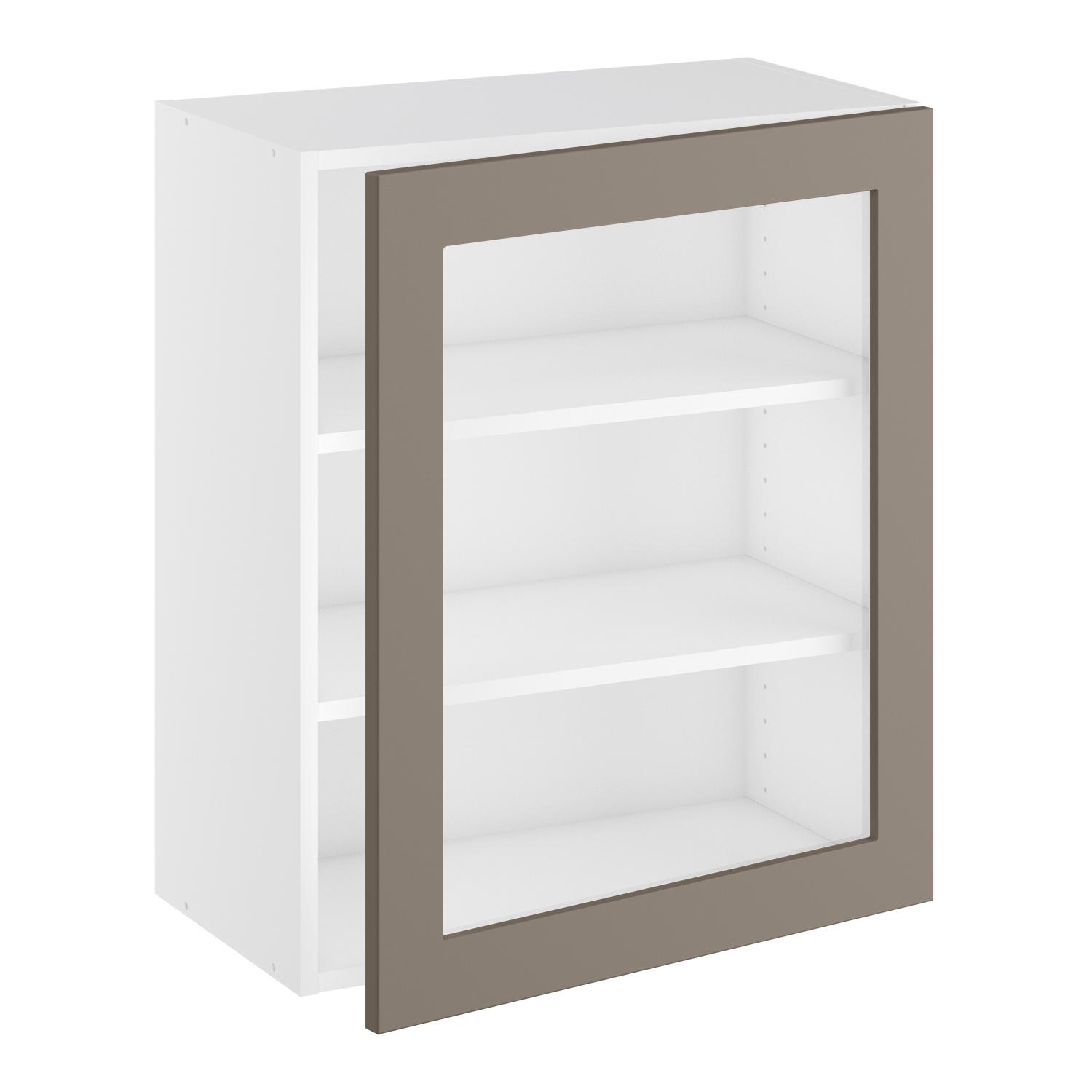 Vitrineskabet har en god praktisk størrelse, der kan monteres de fleste steder. De 2 hylder kan justeres, og skabet kan også suppleres med glashylder. Skabet kan med det indbyggede ophæng monteres alene, men bliver også brugt i sammenhæng med andre skabe. Vitrineoverskabet er velegnet som en del af et køkken- eller bryggersmiljø. Overvej lågedæmpere for at undgå at lågen smækker i.
