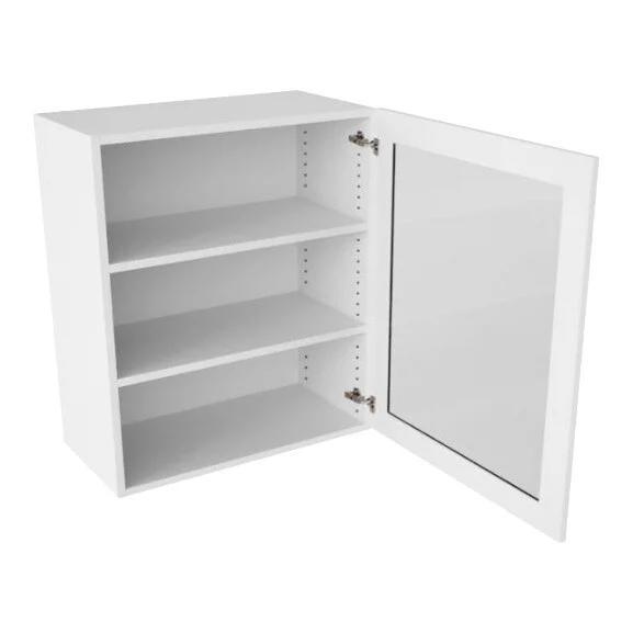 Vitrineskabet har en god praktisk størrelse, der kan monteres de fleste steder. De 2 hylder kan justeres, og skabet kan også suppleres med glashylder. Skabet kan med det indbyggede ophæng monteres alene, men bliver også brugt i sammenhæng med andre skabe. Vitrineoverskabet er velegnet som en del af et køkken- eller bryggersmiljø. Overvej lågedæmpere for at undgå at lågen smækker i.