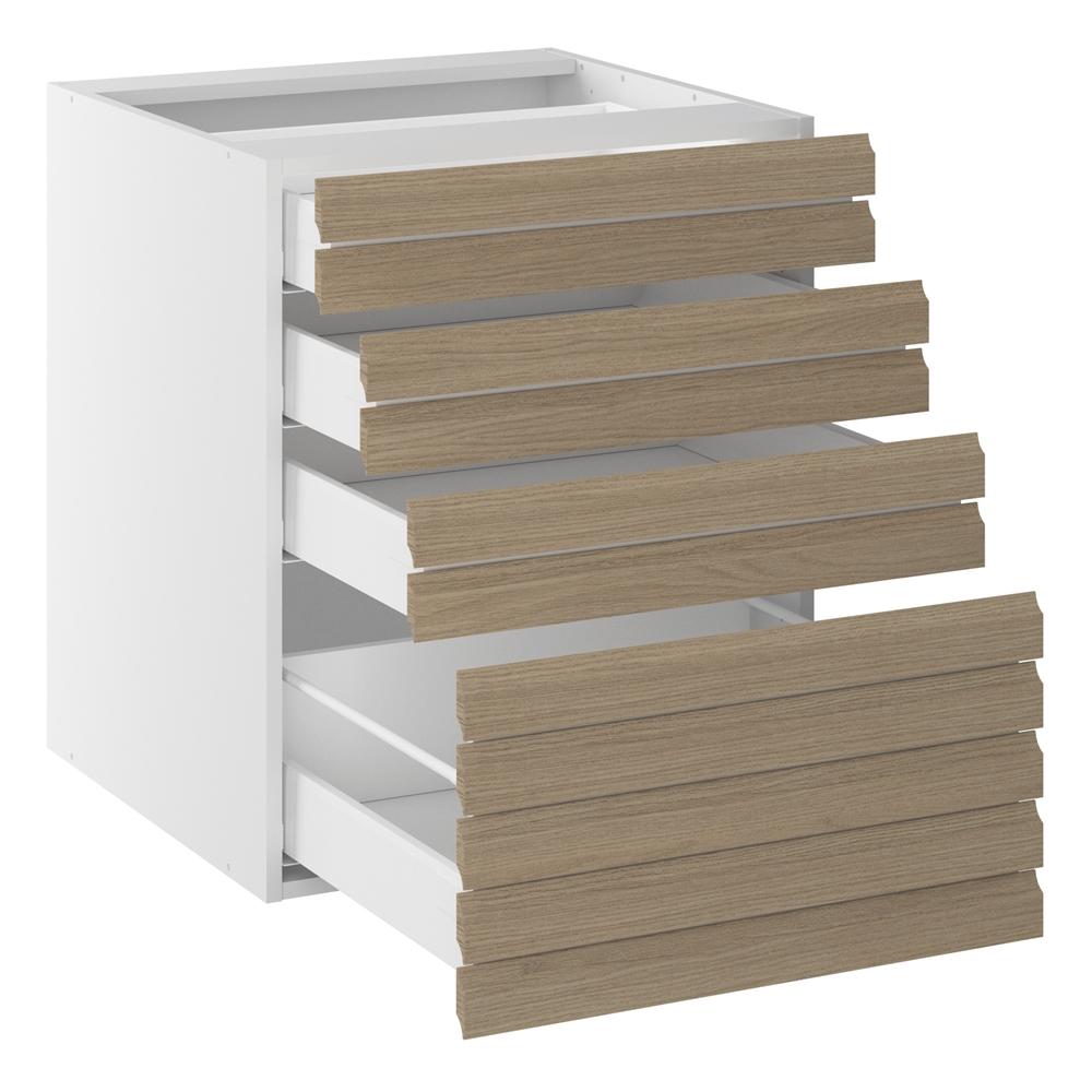 Skabet er udstyret med kvalitets-skuffer, der bærer op til 30 kg. pr. skuffe, og der er selvfølgelig både fuldudtræk og softluk på skufferne. Underskabet er velegnet som en del af et køkken- eller bryggersmiljø, hvor du for eksempel kan opbevare køkkenting, service eller kolonialvarer. Overvej at tilkøbe gummimåtter så alt i skuffen står godt fast ved åbning og lukning.